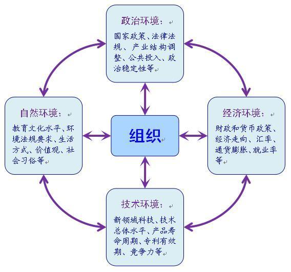 - 外部環境:指政治、經濟、技術、社會文化、自然及相關方的影響;一般包括宏觀方面和微觀方面,它們影響著質量管理體系的有效性。
